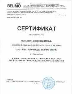 ТОВ «Науково-виробнича фірма «ЕНЕРГОСИСТЕМИ» » є офіційним партнером компанії ООО «ЭЛЕКТРОПРИВОДЫ БЕЛИМО ДНЕПР» та має повноваження з продажу і монтажу обладнання виробництва BELIMO Automation AG