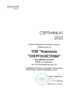 ТОВ «Компанія «ЕНЕРГОСИСТЕМИ» » є офіційним партнером з дистрибуції департаменту «Smart Energy» компанії Honeywell в Україні