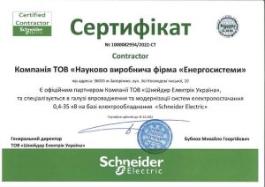 Компанія ТОВ «Науково-виробнича фірма «ЕНЕРГОСИСТЕМИ» » є офіційним партнером компанії ТОВ «Шнейдер Електрік Україна» та спеціалізується в галузі впровадження та модернізації систем електропостачання 0.4-35 кВ на базі електрообладнання «Schneider Electric»